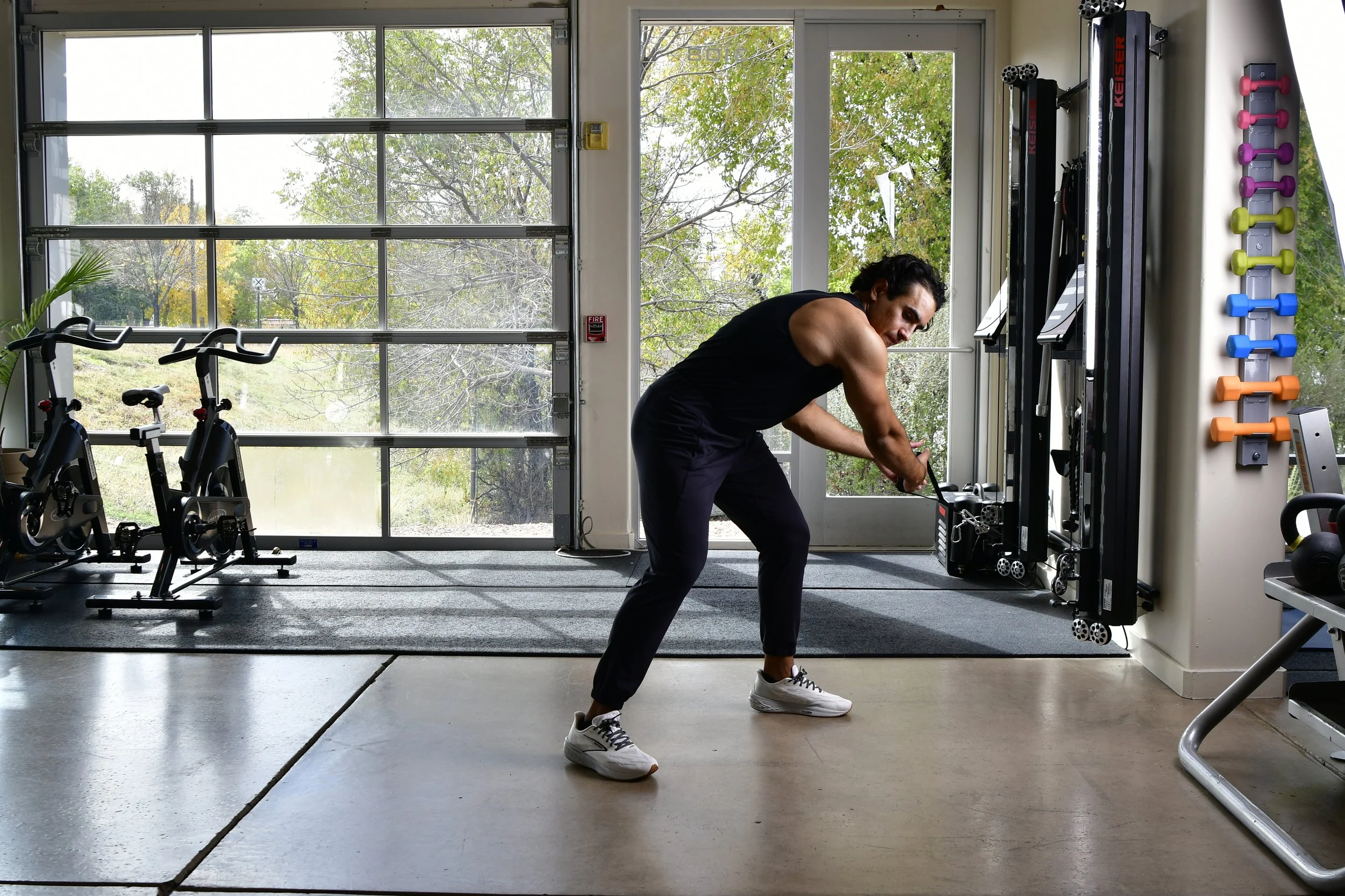 You’ll find a curated selection of free weights, resistance tools, TRX, and balance equipment, alongside essential cardio (Matrix) and a small number of machines—each included with intention.
